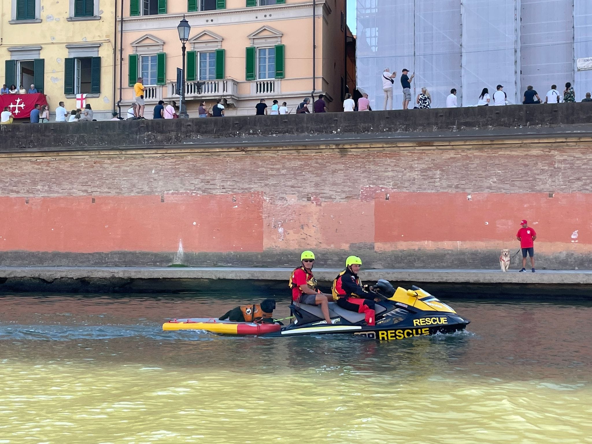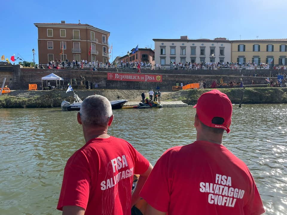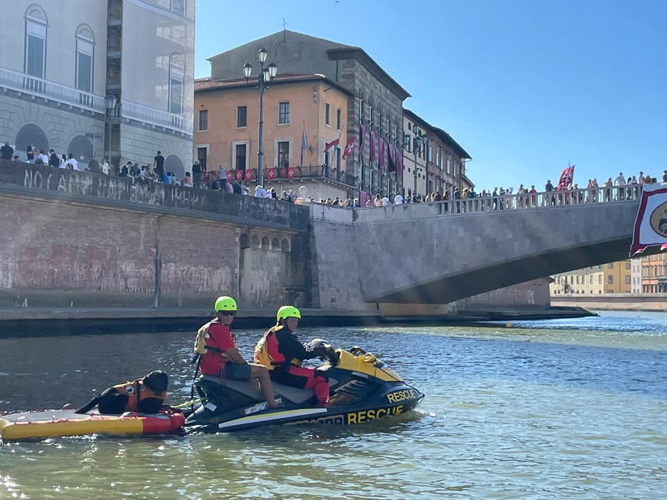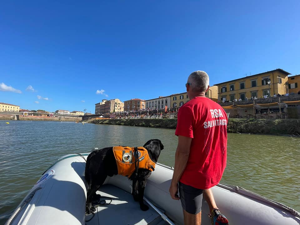 In occasione della 67° edizione della Regata delle Repubbliche Marinare, svoltasi sul fiume Arno presso la città di Pisa, la nostra associazione, con le nostre unità cinofile, e FISA, con gommone e moto d’acqua, hanno garantito la sicurezza in acqua durante lo svolgimento della gara.