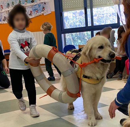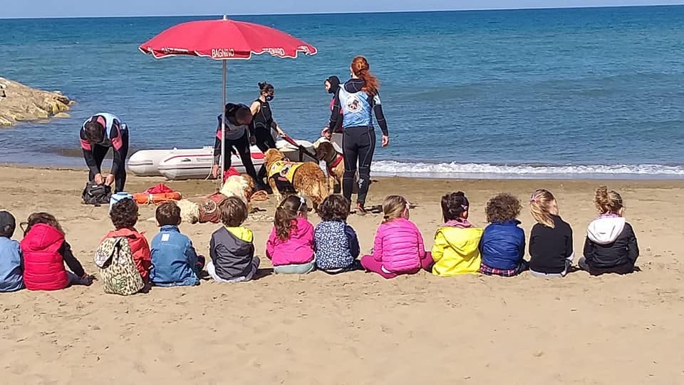 Da qualche anno,grazie alla collaborazione con l’associazione Inside Dog (associazione cinofila con sede a San Vincenzo) , ci impegniamo attraverso progetti mirati, a divulgare e approfondire la cultura cinofila nella scuole materne, medie e in associazioni che si occupano di bambini ,disabili e persone svantaggiate. Lo scopo é quello di offrire un’occasione di interazione con il cane contribuendo in modo rilevante allo sviluppo cognitivo ed emotivo determinando uno scambio reciproco di emozioni e stimoli;, andiamo a sensibilizzare i bambini nella conoscenza e nel rispetto del cane in generale e di quello da salvataggio in particolare, attraverso spiegazioni teoriche sull’addestramento. Gli interventi sono pianificati e svolti da istruttori cinofili qualificati che conducono l’animale a promuovere la relazione utente-animale coerentemente con gli interventi del progetto.