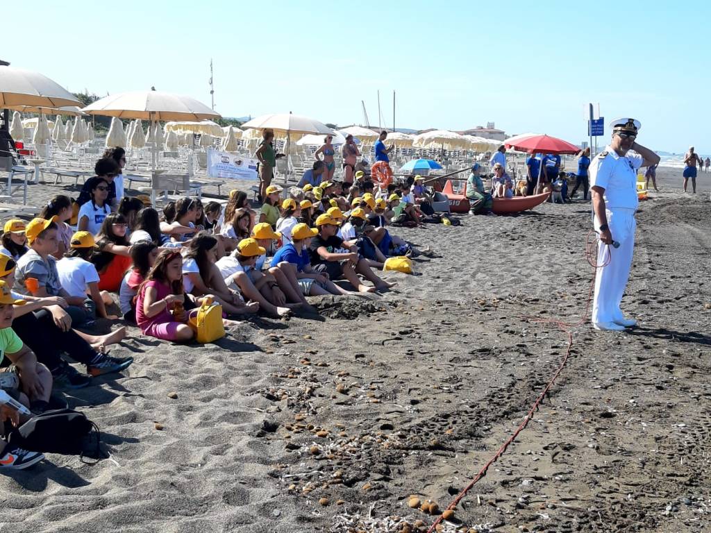 Ha continuato poi: “Si tratta di un’esperienza importante per i ragazzi che permette loro di entrare in contatto con realtà straordinarie fra le quali, quella molto apprezzata dei “cani bagnino” e di poter vivere con maggior consapevolezza e prudenza la loro estate balneare. Nel corso degli anni il progetto inizialmente concentrato principalmente sulla prevenzione degli incidenti in acqua, grazie alla collaborazione del Corpo Forestale della Stato prima, e adesso dei Carabinieri della Biodiversità ha sviluppato un interesse particolare verso temi di educazione ambientale attraverso uscite didattiche nella pineta della Riserva Biogenetica dei Tomboli di Cecina. Sempre in un’ottica di educazione ambientale, grazie alla biologa marina dell’Arpat di Livorno, Cecilia Mancuso, è stato possibile conoscere l’Osservatorio Regionale Cetacei, le peculiarità del Santuario Pelagos e di tutte le meraviglie che vivono nelle acque delle nostre coste”.